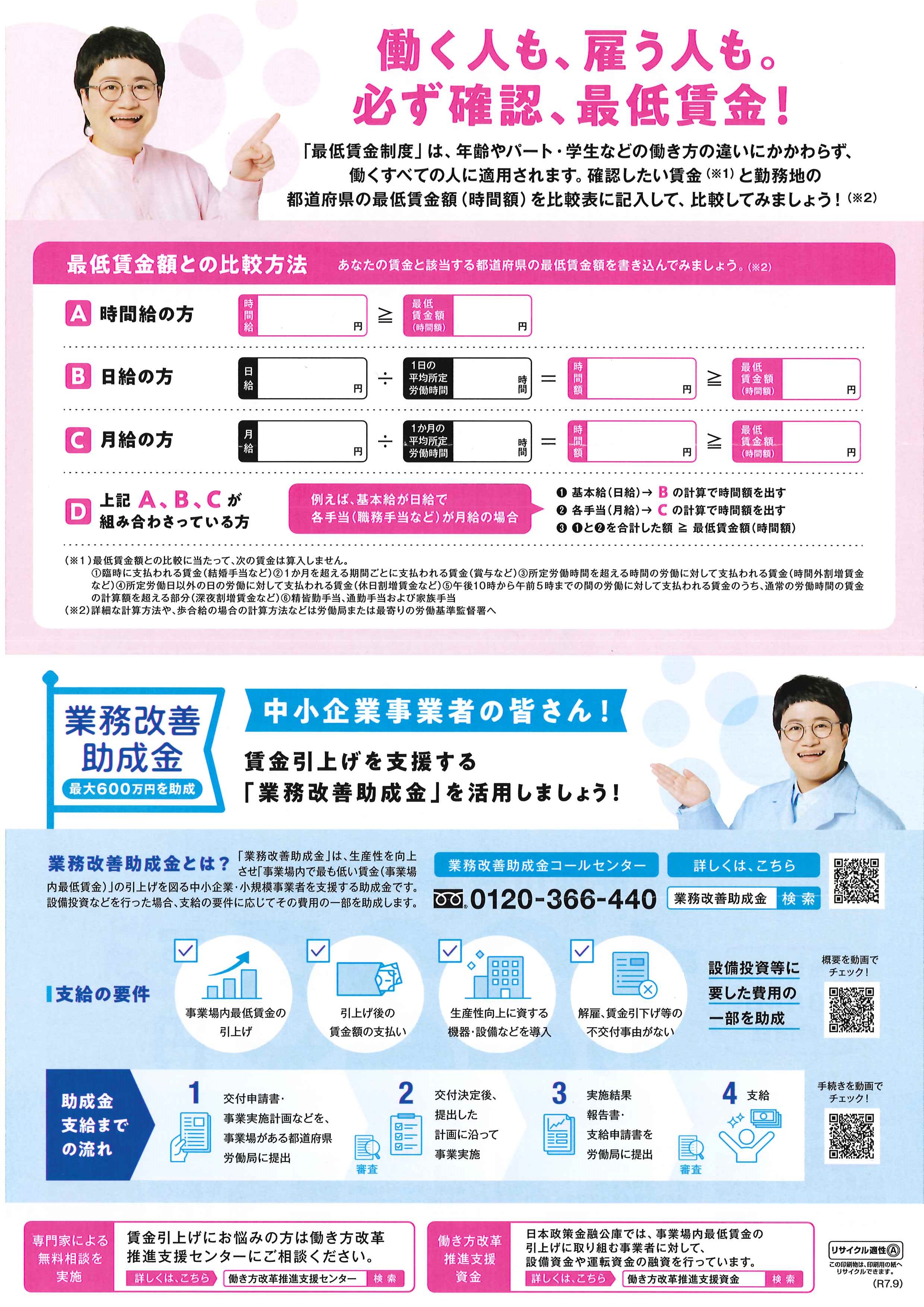 中小企業・小規模事業者向けに賃金引上げの際に活用できる業務改善助成金等、各種支援策、無料相談を用意しています。