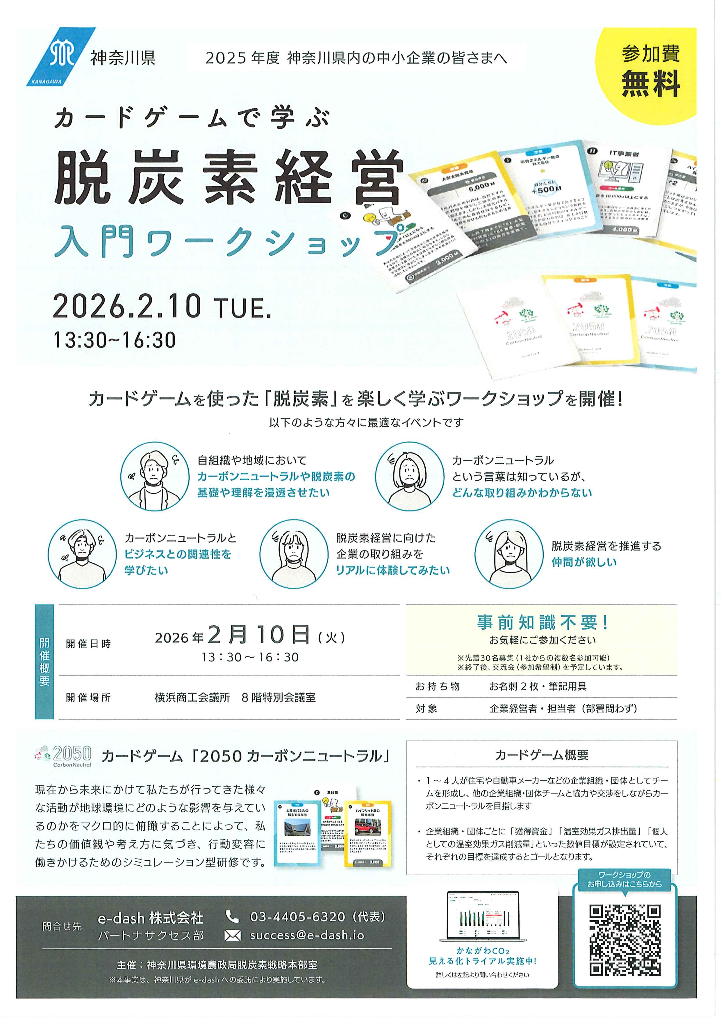 2025年12月8日 / 最終更新日 : 2025年12月8日 二宮町商工会 新着情報・お知らせ カードゲームで学ぶ脱炭素経営入門ワークショップ 神奈川県から表題のお知らせが届きました。 是非、ご活用ください。